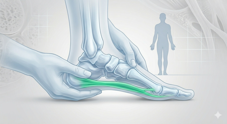 この強靭な膜が、何らかの理由で過剰に引き伸ばされたり、繰り返し衝撃を受けたりすることで、膜の根元(主にかかとの骨付近)に微細な傷や炎症が生じます。これが足底筋膜炎の正体です。