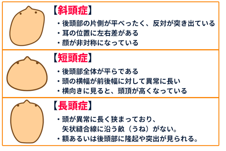 施術の対象となるのは位置的頭蓋変形ですが、外見では頭蓋骨癒合早期癒合と区別がつかない場合があります。