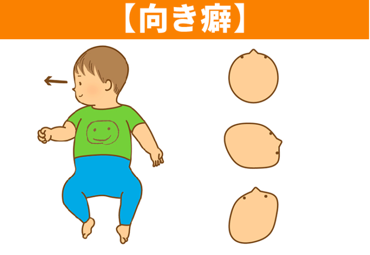 接地面以外が大きく成長し、斜頸や短頭といった頭蓋変形がおきます。斜頸を発症している場合は、頭を別の位置に向けることが困難なため、発症しやすいです。