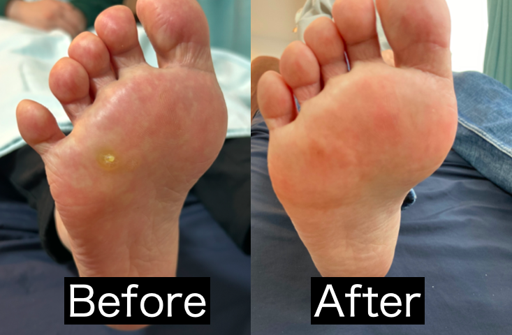 魚の目のケアと同時に歩き方や身体の改善を行い、根本改善をしております。