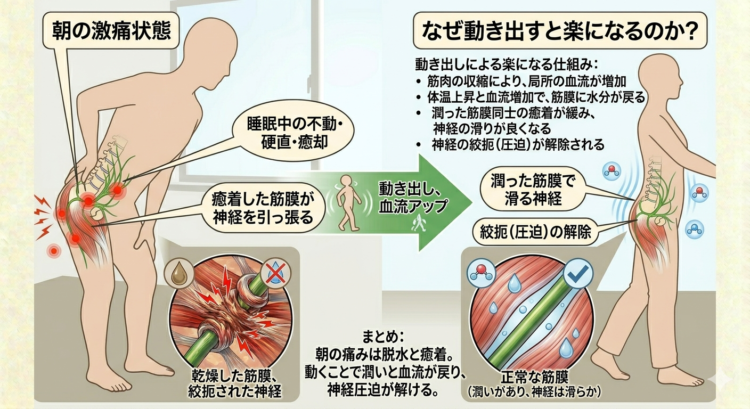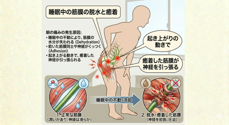 3.朝の激痛の正体:筋膜の「脱水」と「癒着」