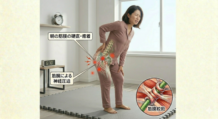 朝の激痛:筋膜が冷えて硬く、神経を「点」で圧迫している状態。